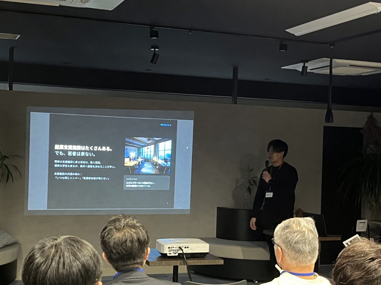 2025.12.15 お知らせ 【イベントレポート】T-Startupクロスピッチ 12月3日(水)にコワーキングスペース「hiraku」にて、富山県内外のスタートアップによる「T-Startupクロスピッチ」を開催しました。本イベントでは、T-Startup初の取り組みとして、富山県という枠を超えて北陸三県からバイタリティ溢れるスタートアップの4社に、自社の事業・サービスや今後の連携について熱く語っていただきました。①かまちょっかい株式会社(石川:代表取締役社長 金城 拓登 氏) 石川県からは、かまちょっかい様が、AIを活用したオーダーメイドの業務効率化アプリ「アプダス」を紹介。難しいプログラミング知識や煩雑な仕様書が一切不要で、顧客のニーズにあった業務改善を簡単に提案してくれる手軽さを実際にイベント中に短時間で作ったサンプルを見せながらご説明いただきました。金城代表は沖縄出身で、縁もゆかりもなかった北陸の地でゼロから起業し、今では5名のスタッフを抱えるスタートアップまでに成長しました。現在は石川県加賀市と連携協定を契約し、ITの力で地域の課題解決に取り組まれており、今後も全国の自治体や企業様との連携を強化していく予定とのことです。②株式会社シンクシー(富山:代表取締役 野口 朋寿 氏) 富山県からは、シンクシー様が、廃棄される魚の皮を加工した持続可能な新素材「フィッシュレザー」のブランド「tototo」を紹介。なんとこちらのレザー、有名なギタリストの衣装の一部に利用されたり、高級レストランのランプシェードにも活用されているそうです。参加者がサンプルを実際に手に取り、その丈夫さやにおいの無さを確かめていたのが印象的でした。素材の耐久性や品質をもっと広く理解してもらうために企業や自治体や大学との連携も模索されているとのことです。③まいほむ株式会社(福井:代表取締役社長 牧野 智樹 氏) 福井県からは、まいほむ様が、年々深刻化する全国の空き家問題を解決する買取再販のリノベーションサービスを紹介。実際に手掛けたリノベーション物件のbefore→afterの写真を織り交ぜながらご説明いただき、なぜ空き家が問題となっているか、地方と都市の違い、また競合他社との差別化戦略についても余すことなく語っていただきました。北陸の有名家電量販店の社長も経営に参画し、これまで再生した空き家は400件以上の実績を誇る起業家に対して、期待の眼差しを向ける参加企業も多かったのではと感じます。④株式会社ModelingX(富山:代表取締役CEO 山田 航大 氏) 最後にご登壇いただいたのは過去にT-Stratupにも採択されたメタバース・XR開発を手掛けるModelingX様。今回は新規事業をピッチいただきました。 自らの起業のリアルな経験を振り返り、大人が待っていても若者がついてこないスタートアップの現状を打破すべく、月額会員のコミュニティビジネスを新たに提案。今後の実証実験に関わる連携パートナーやスポンサー企業の募集についてもプレゼンいただきました。 事業紹介ピッチの終了後には交流会も行われ、登壇したスタートアップへの質問や意見交換が行われ、中には新しいビジネスのタネになりそうなマッチングの話題も聞こえてきました。当日の参加者からは、「富山県だけでなく石川県や福井県と協力して『北陸』という看板でもっとスタートアップの輪を広げていってほしい」「地域のこれからを担うスタートアップが求めているモノ・悩んでいるコトをもっと知りたいし、それに対して自分は何ができるのか真剣に考えていきたい」といった声が寄せられました。T-Startupプロジェクトでは、今後もさまざまなイベントや取組みを企画・開催していきます。今回ご登壇いただいた、かまちょっかい株式会社の金城様、株式会社シンクシーの野口様、まいほむ株式会社の牧野 様、株式会社ModelingXの山田様、そしてご参加いただいた皆様、本当にありがとうございました! (2025年12月3日開催)T-Startupクロスピッチ 【T-Startupインタビュー】就活の“絶望”を“希望”に変える。...